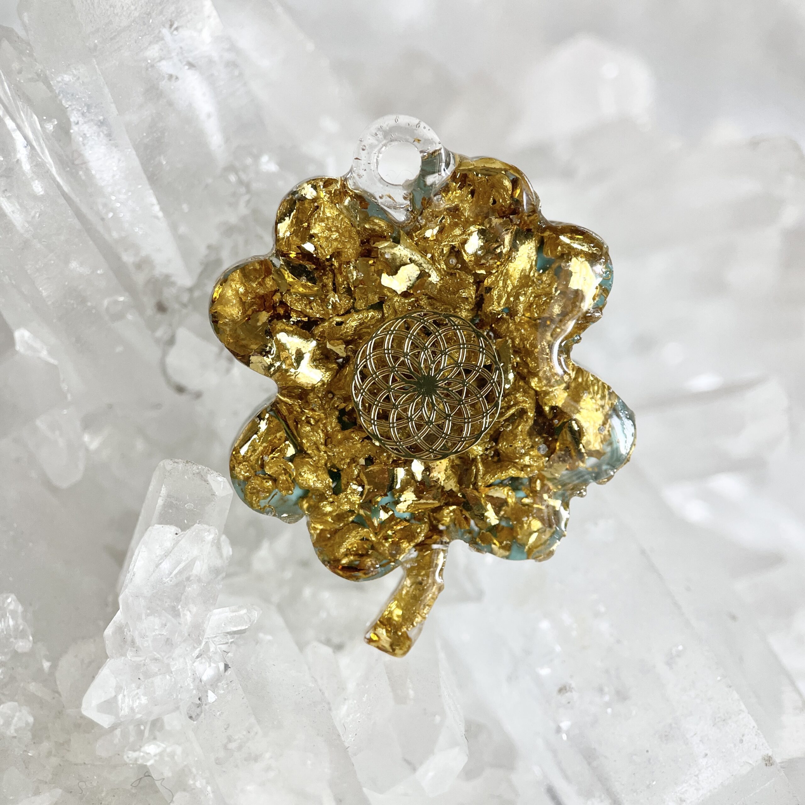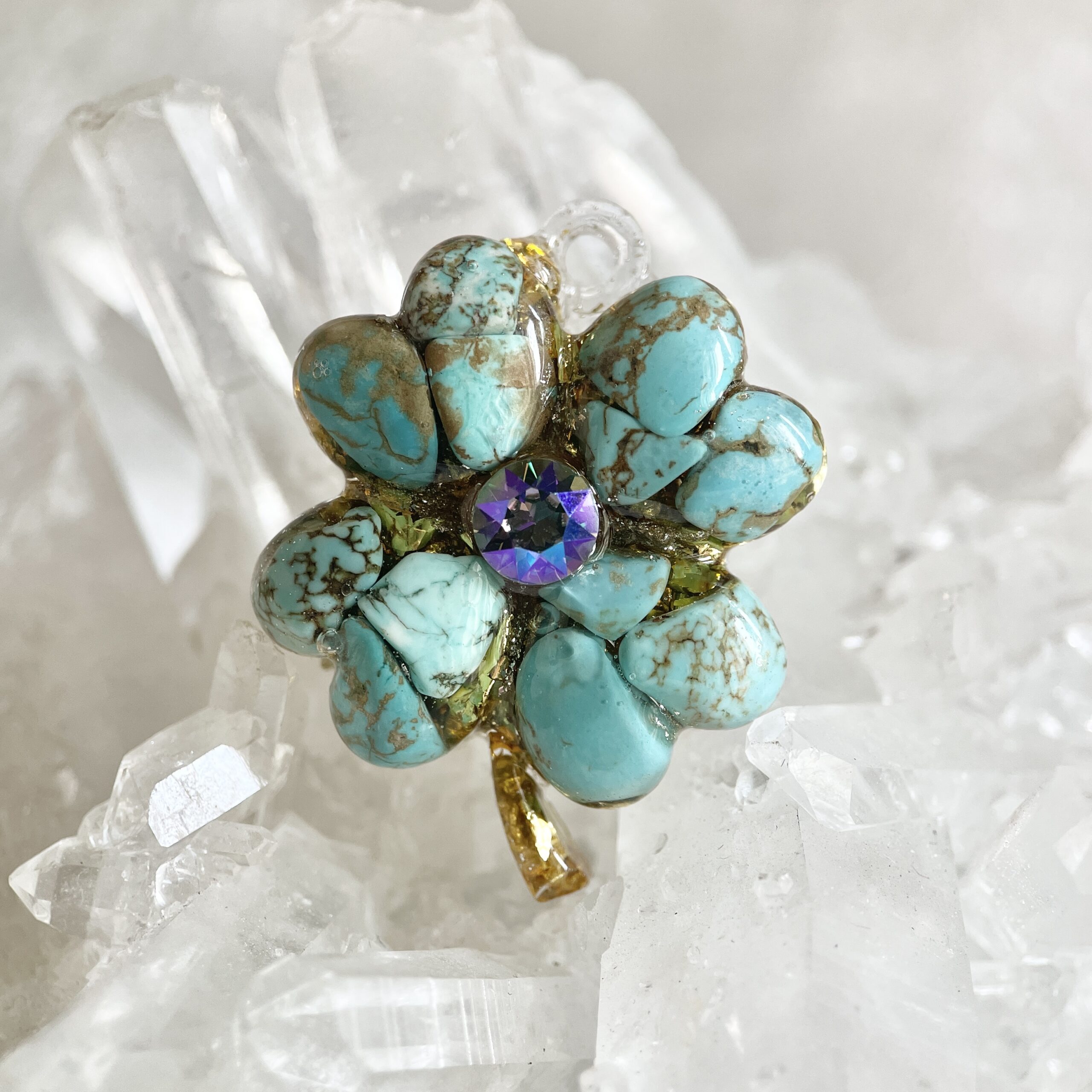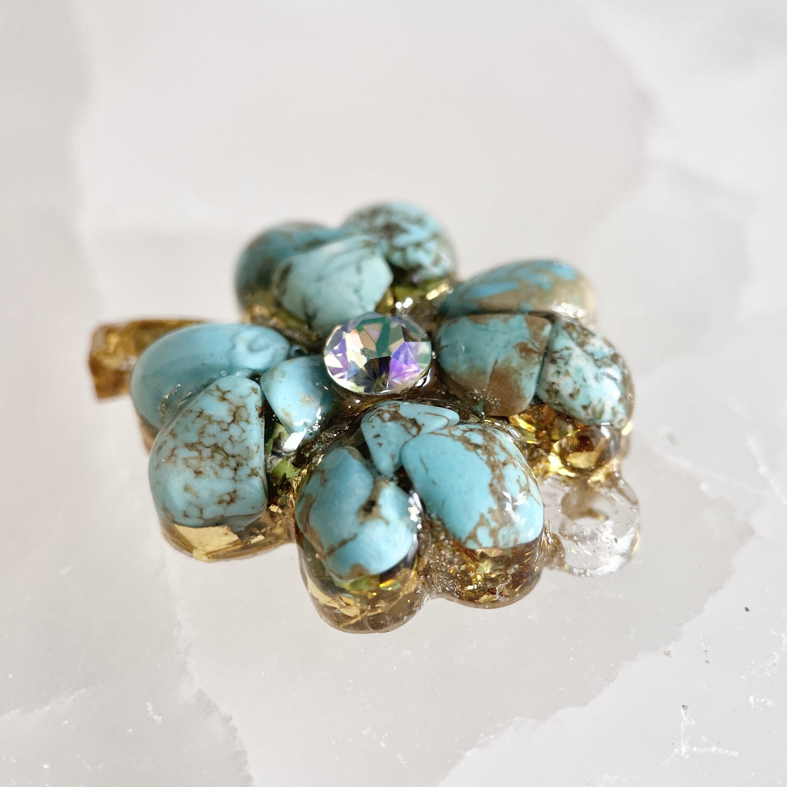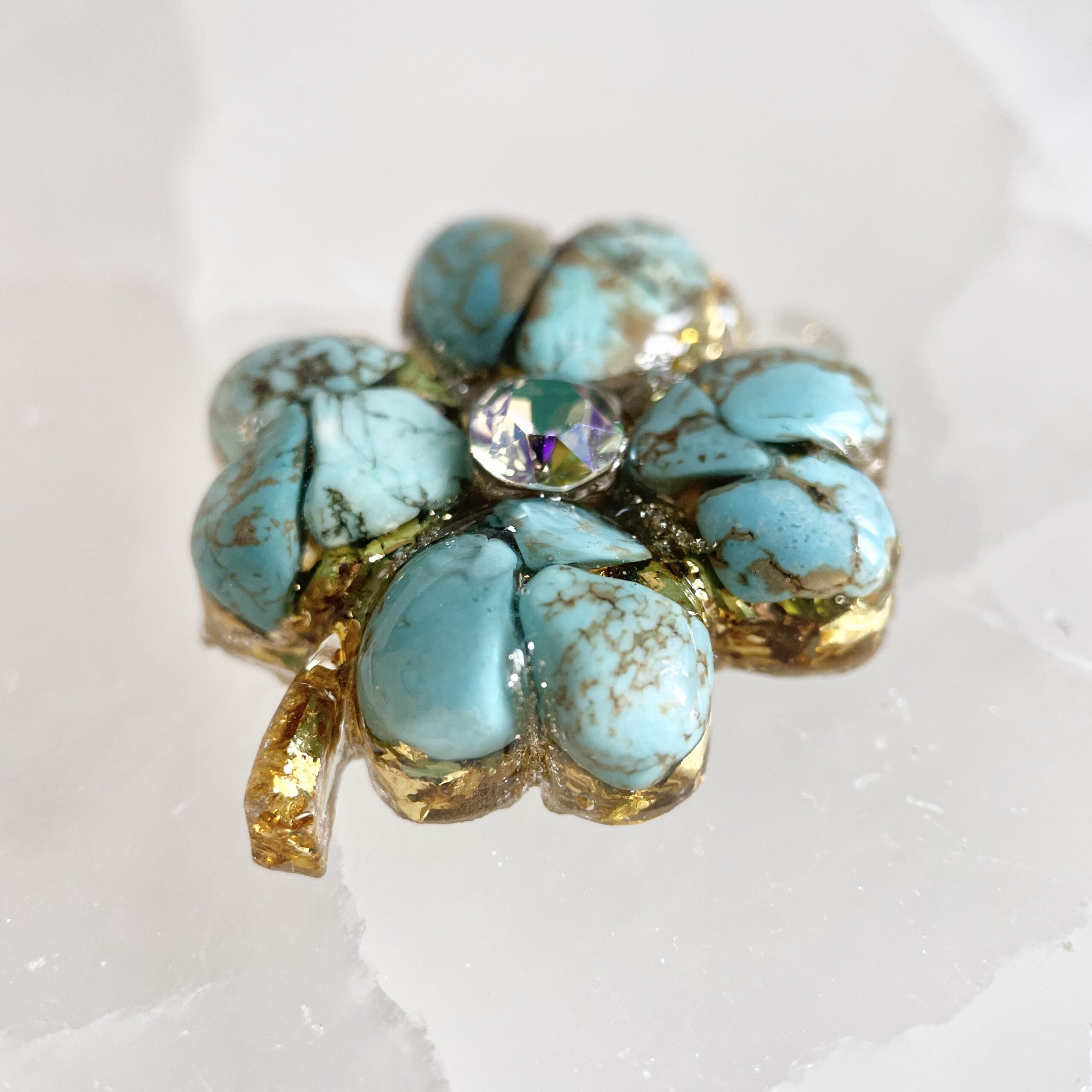 幸運四葉草 – 綠松石(色彩強化)Swarovski高頻奧根能量吊墜/鎖匙扣 Orgonite