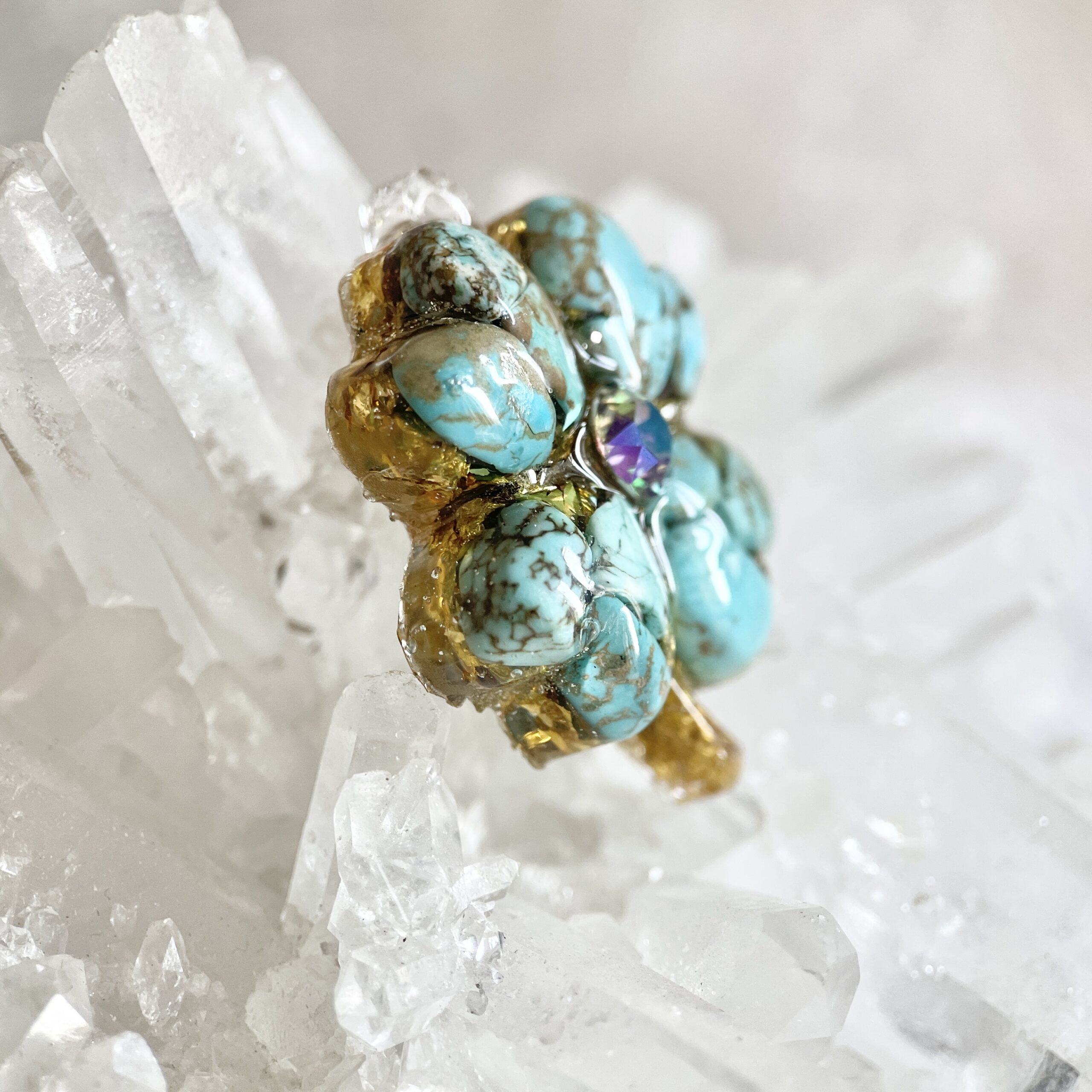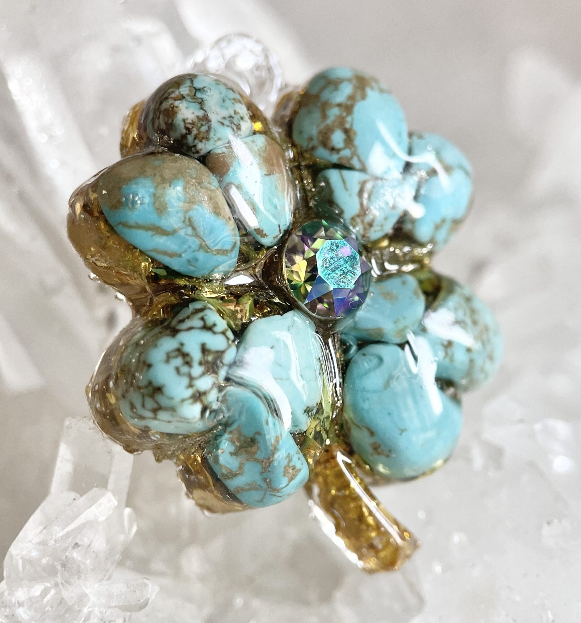 此款綠松石採用的原石經廠商進行後期色彩強化,顯色度較高,色澤更顯鮮艷飽和。由於市面上大多數流通的綠松石均經過色彩強化處理,為了滿足不同客人的需求,我們特意同時提供兩種選擇。 如您偏好天然原礦,歡迎選購本店另一款天然綠松石Orgonite。