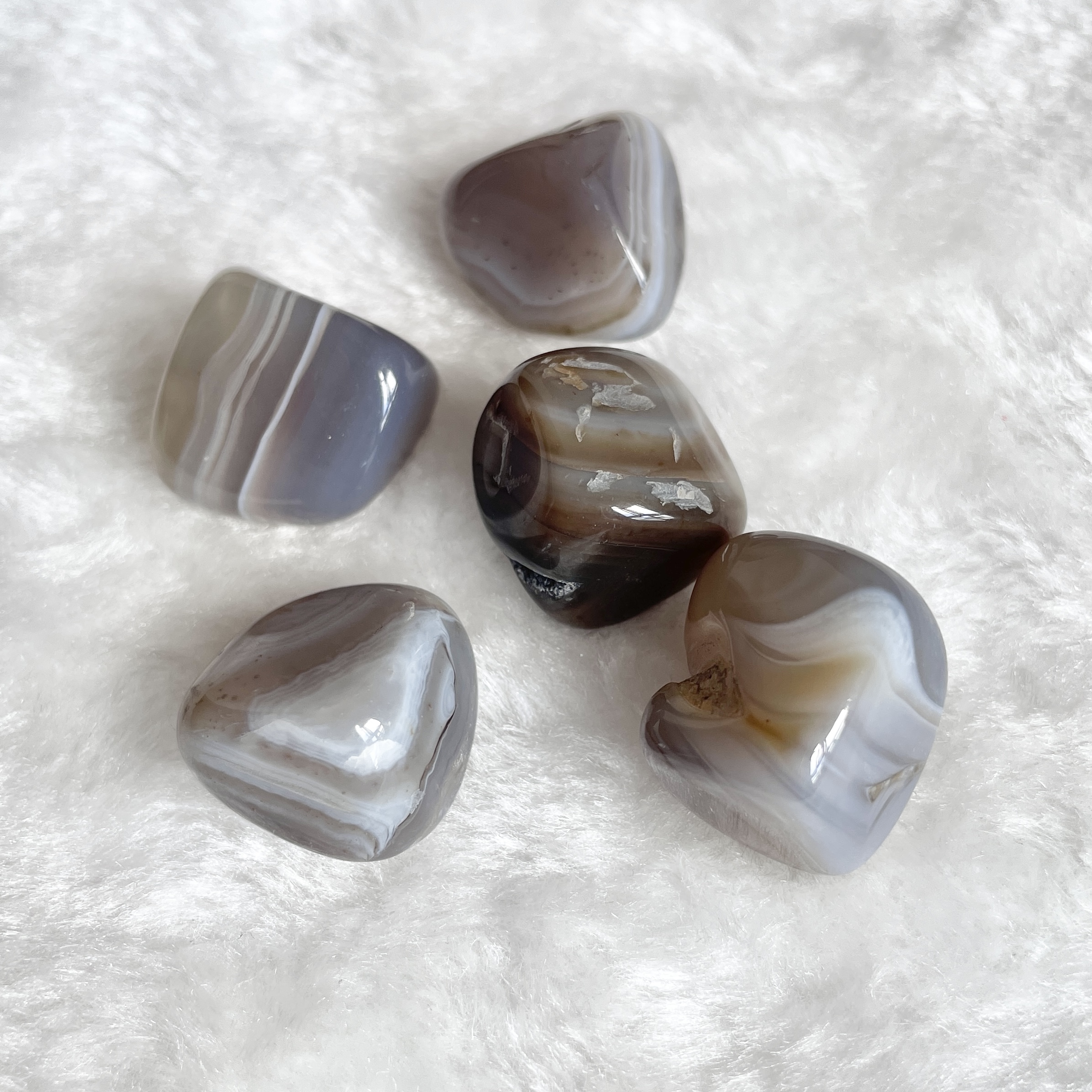 穩定情緒與身心平衡:灰瑪瑙有助於平靜紊亂的思緒,消除負面情緒、恐懼和焦慮,帶來內心的平靜與穩定。