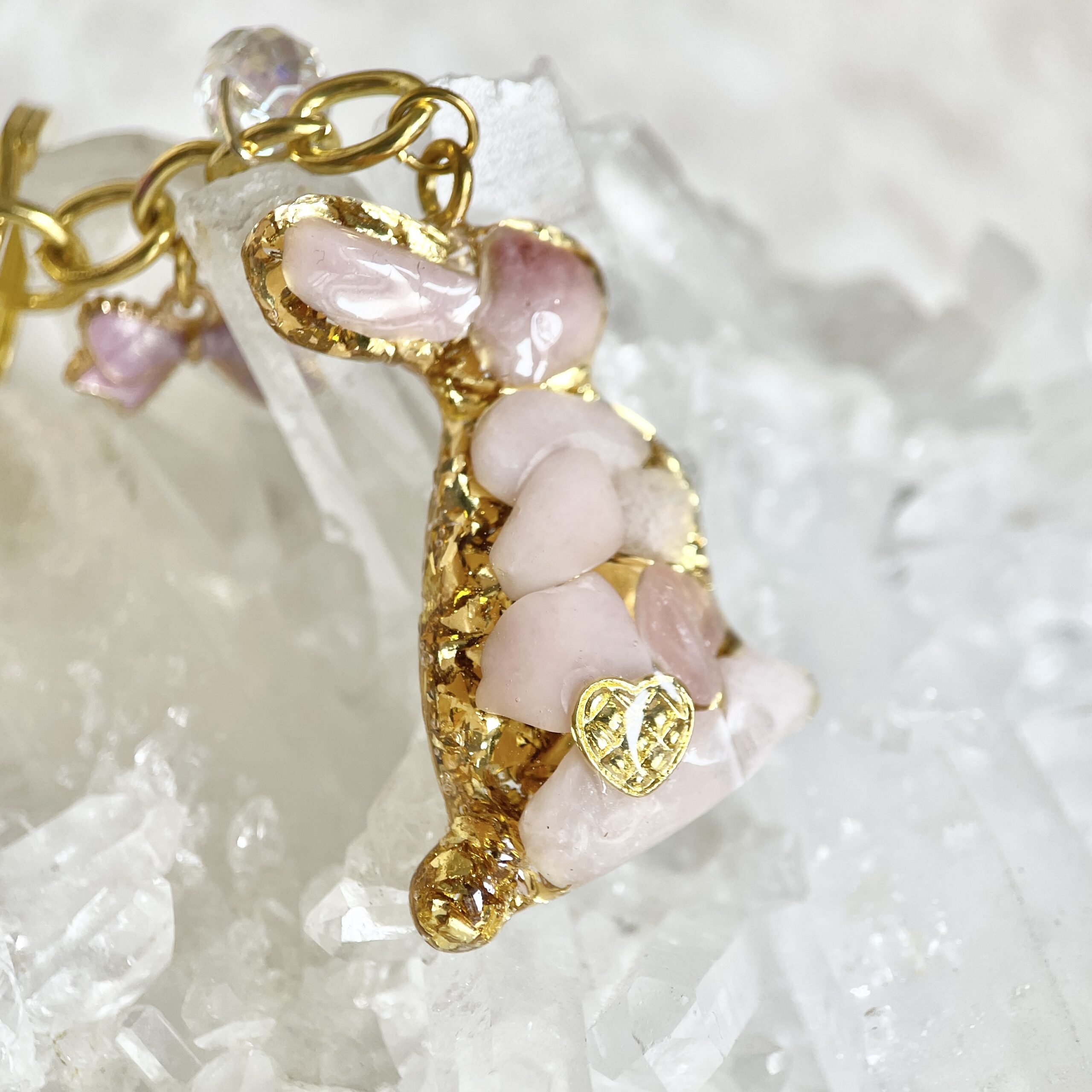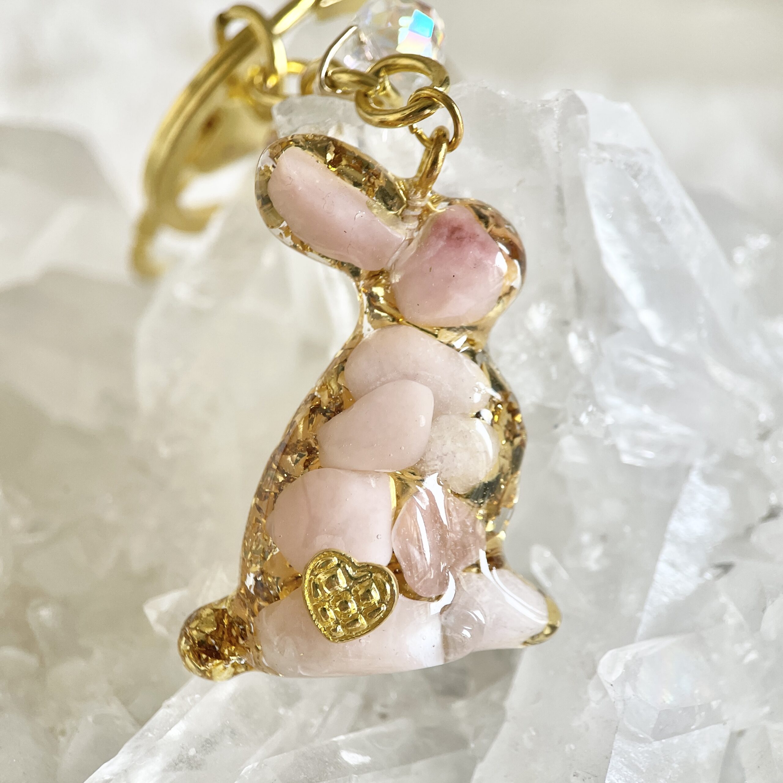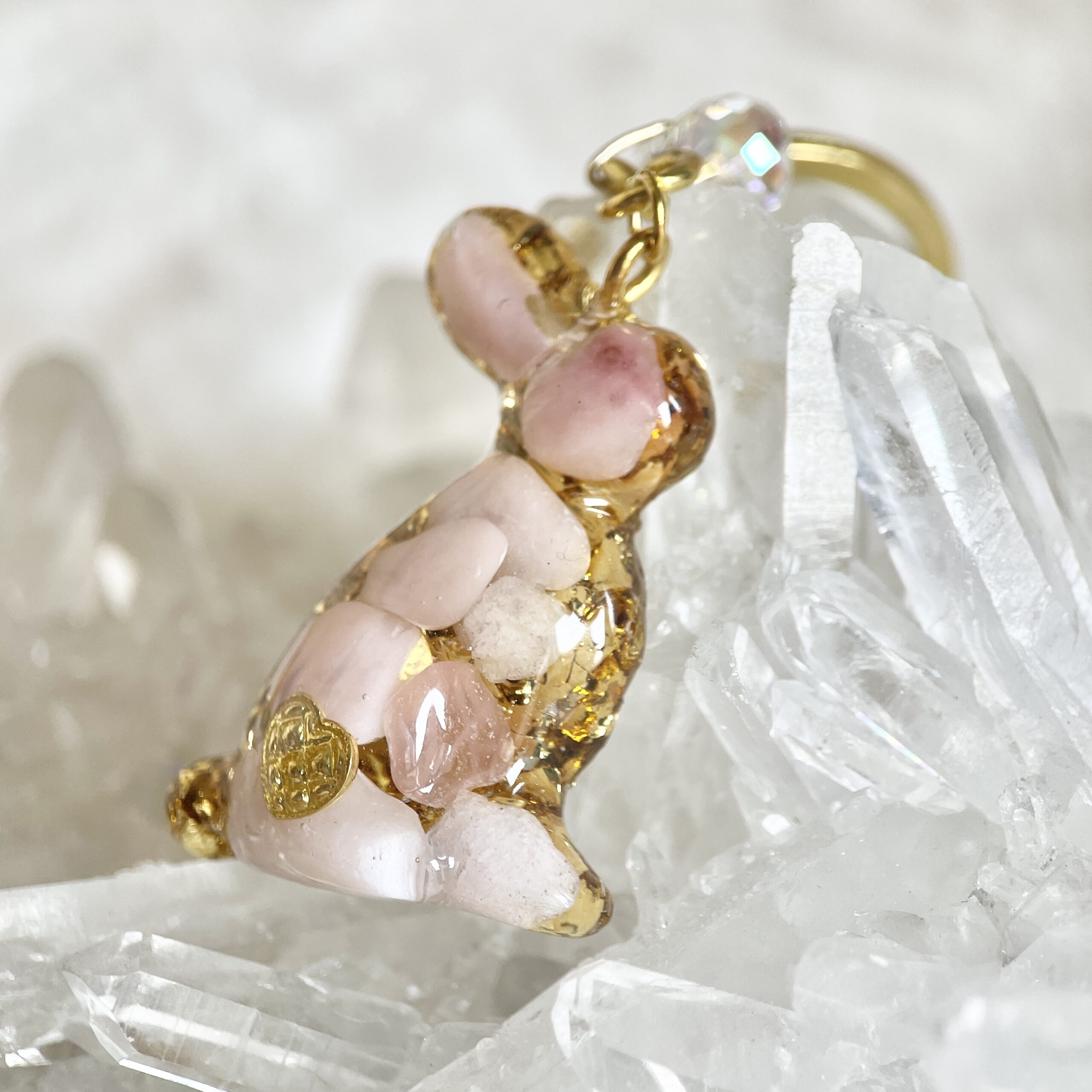 粉澳寶 生命種子圖騰 兔子高頻奧根能量吊墜/鎖匙扣 Orgonite