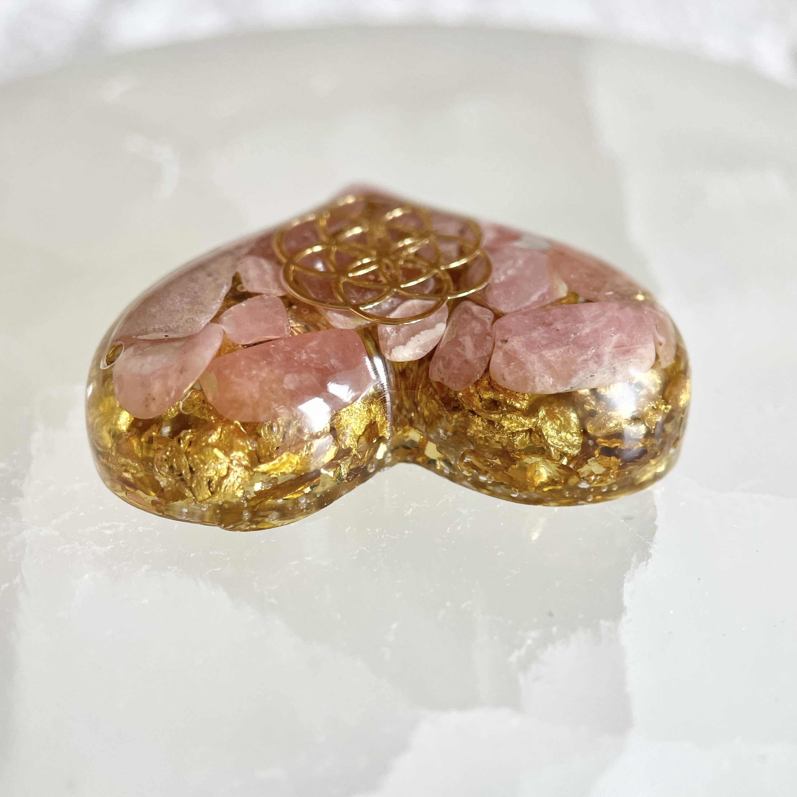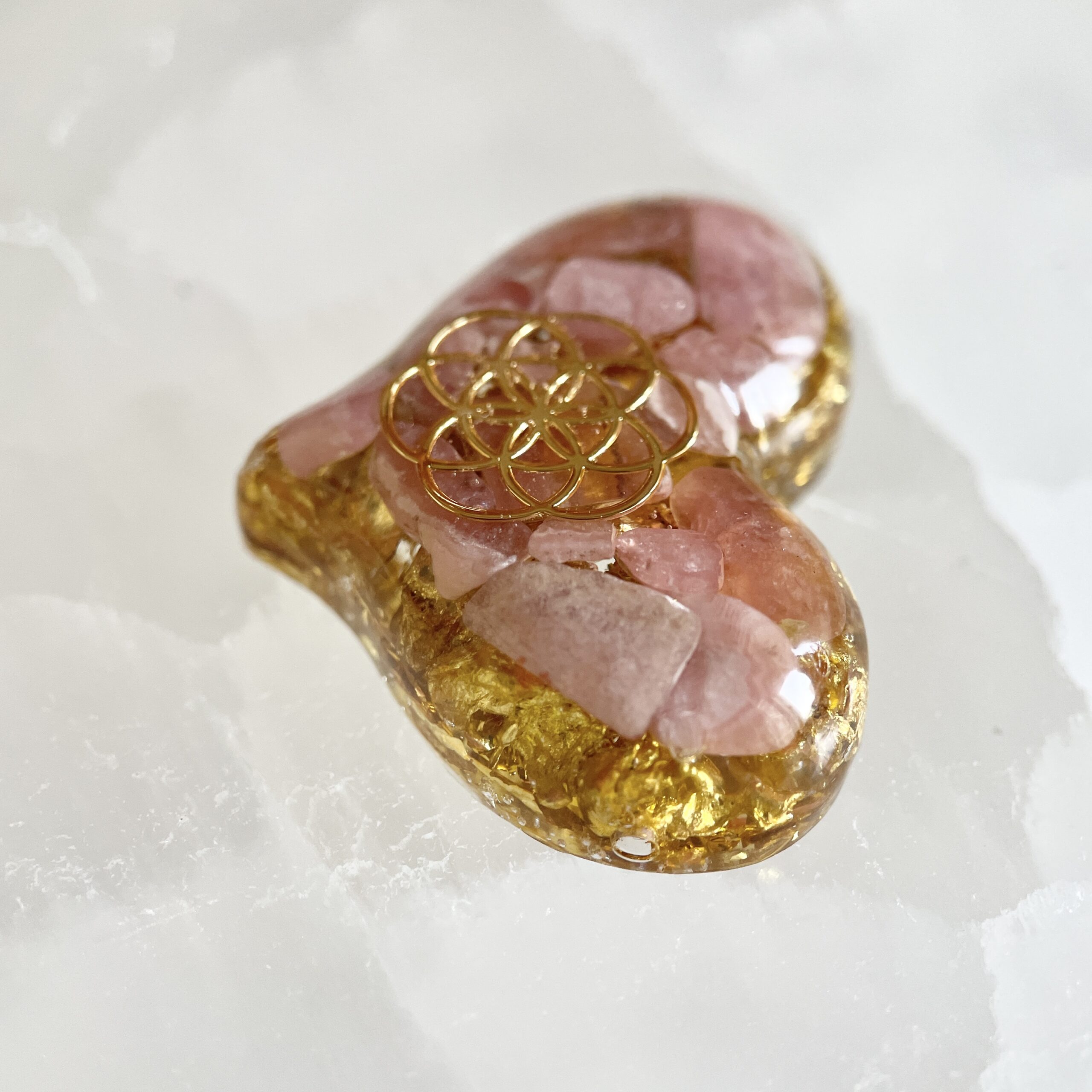 紅紋石 生命種子圖騰 心形高頻奧根能量吊墜/鎖匙扣 Orgonite