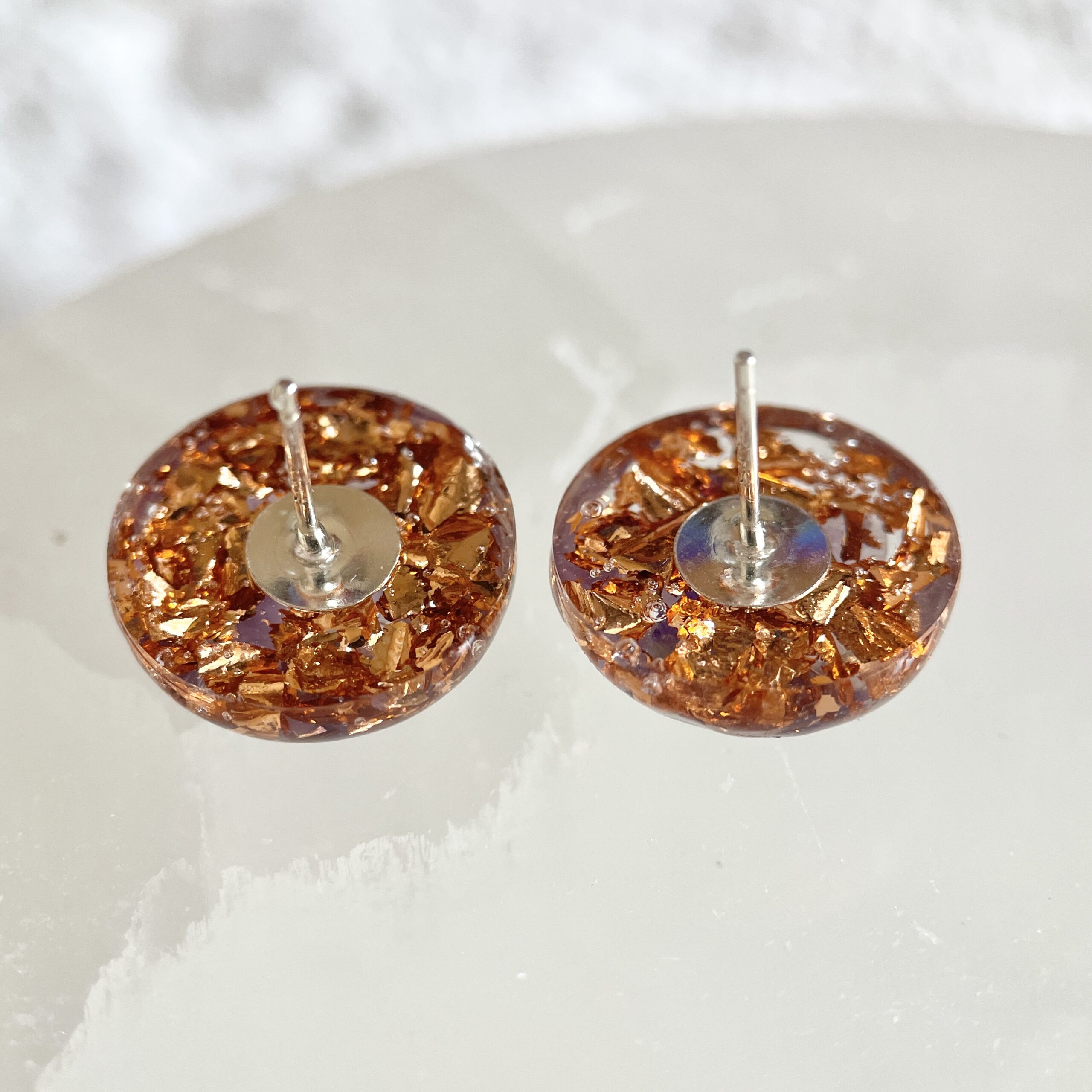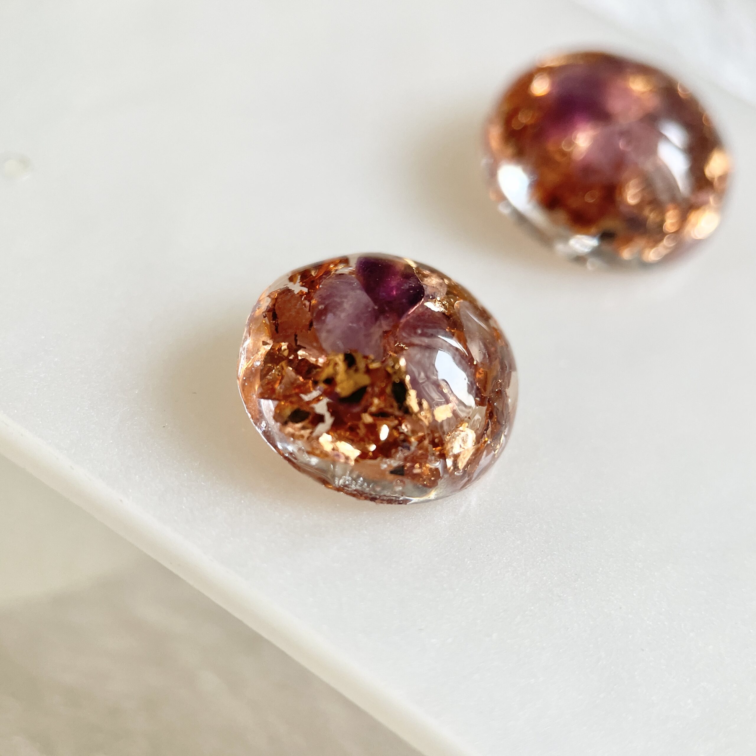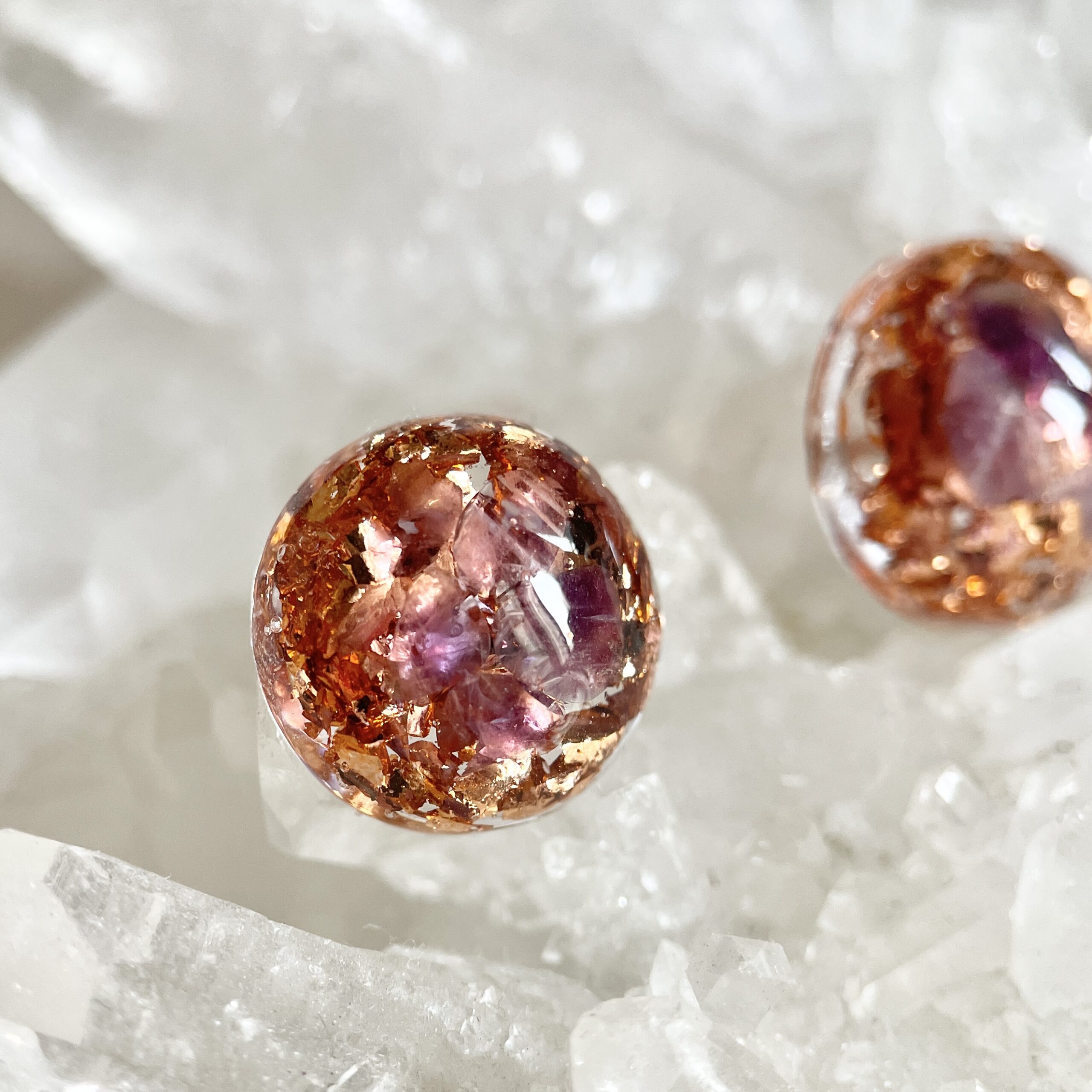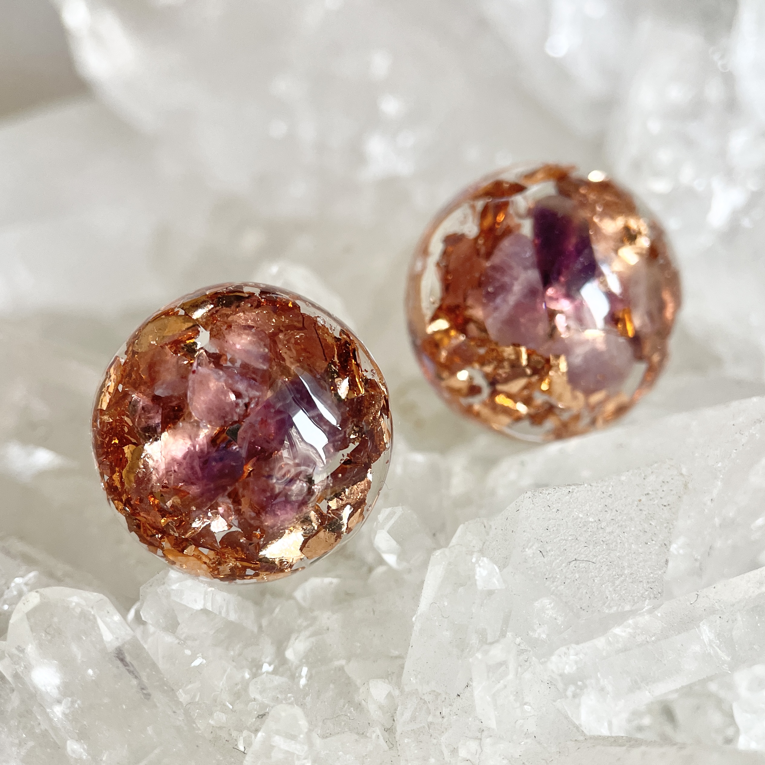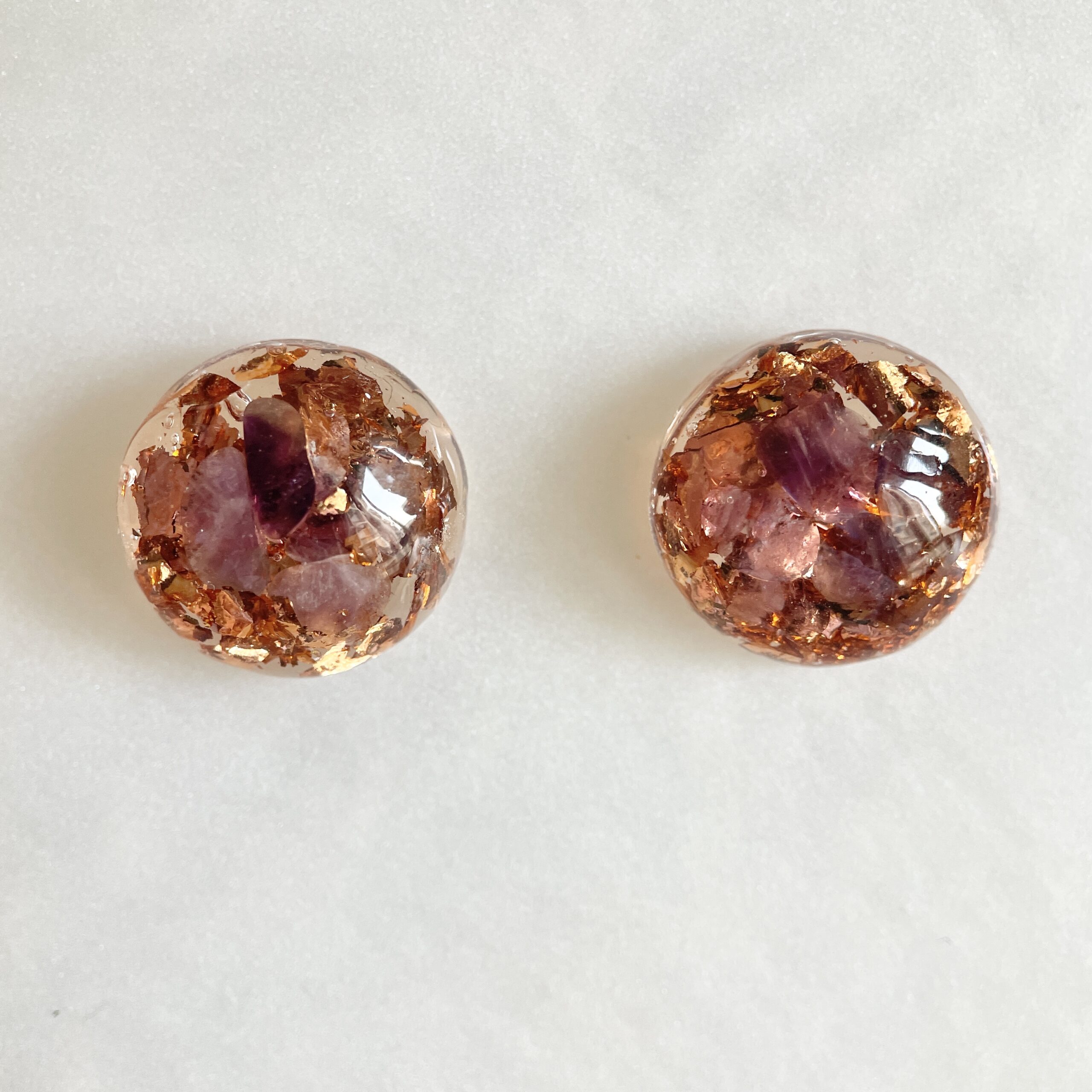 紫水晶圓形高頻奧根能量玫瑰金耳環 Orgonite