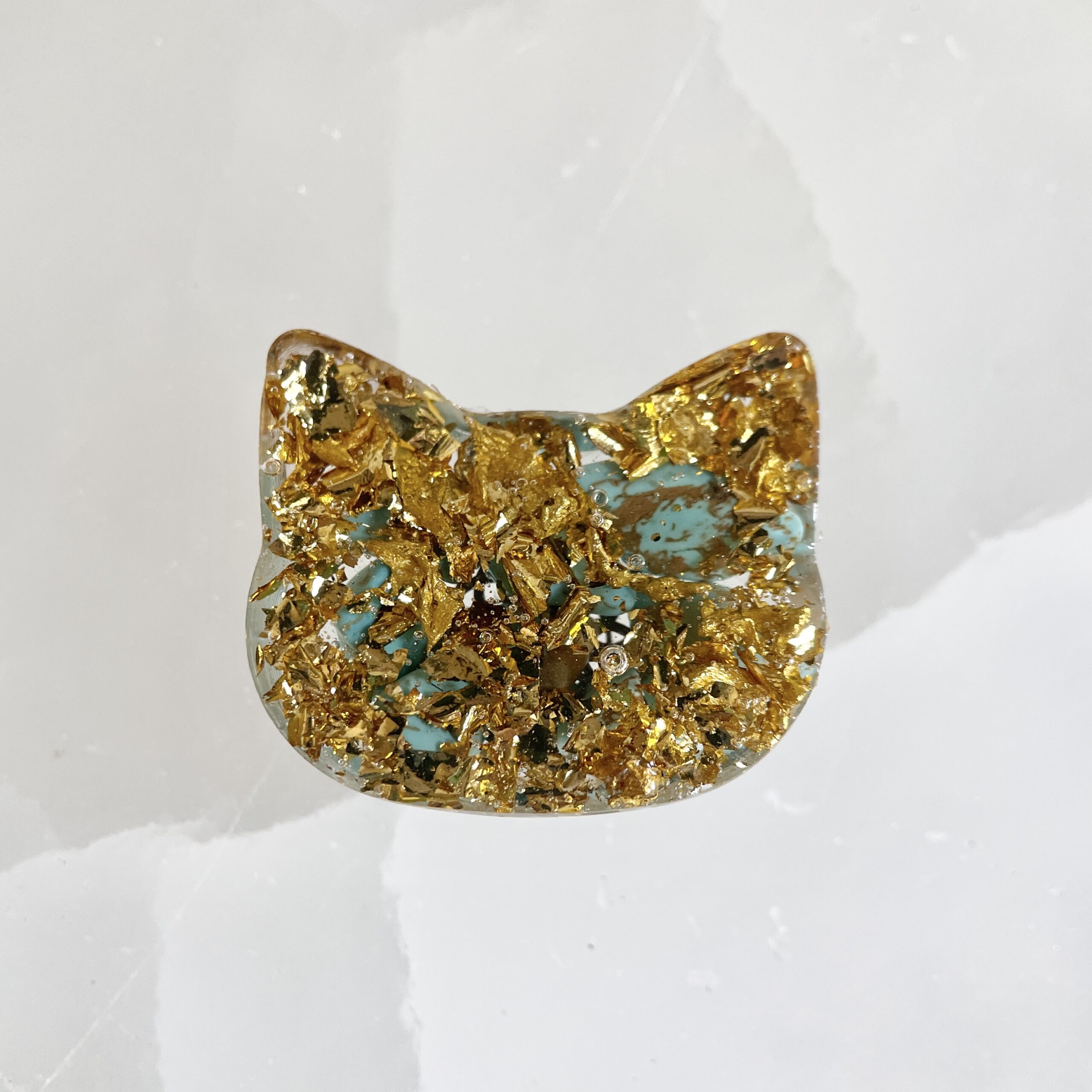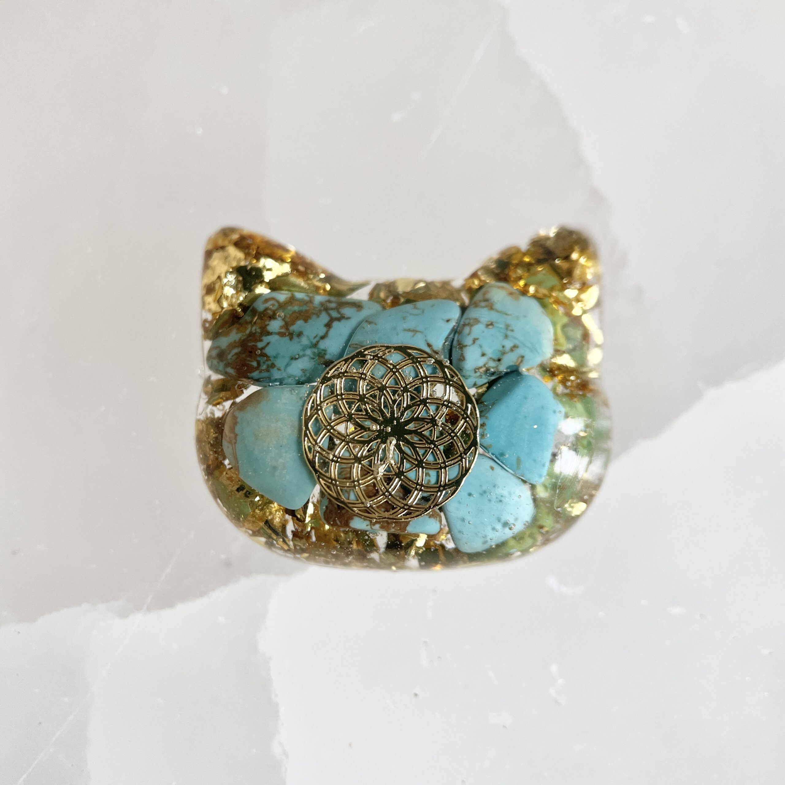 綠松石(色彩強化) 生命種子圖騰 貓貓高頻奧根能量吊墜/鎖匙扣 Orgonite