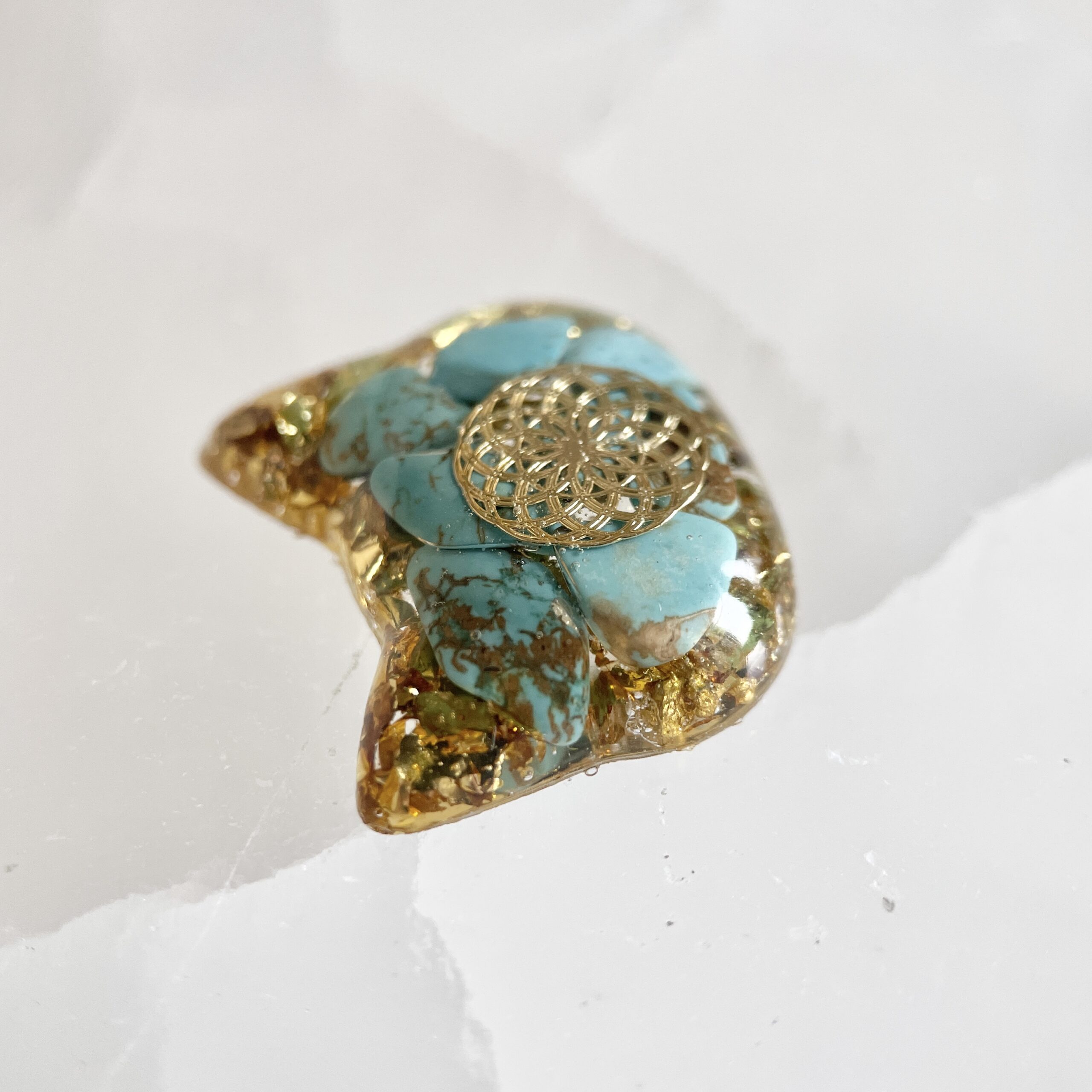 此款綠松石採用的原石經廠商進行後期色彩強化,顯色度較高,色澤更顯鮮艷飽和。由於市面上大多數流通的綠松石均經過色彩強化處理,為了滿足不同客人的需求,我們特意同時提供兩種選擇。 如您偏好天然原礦,歡迎選購本店另一款天然綠松石Orgonite。